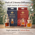 Experience the ultimate in sophisticated fragrance with the Velora Pack of 2 Car Aroma Diffusers featuring Night Jasmine and Velvet Rose. This exquisite floral duo is designed for those who appreciate rich, soothing aromas that transform every drive into a luxurious escape.